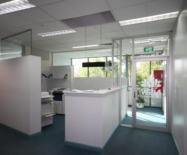 Refurbishment of Safework office reception area including new glazed partitioning and security entrance.